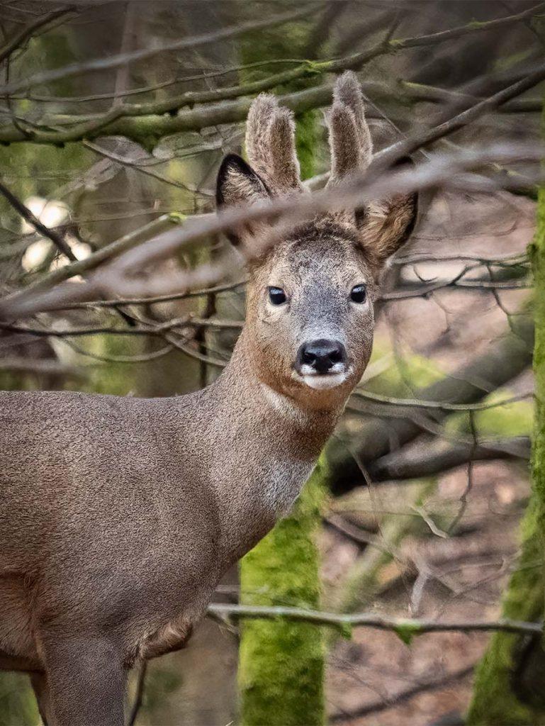 I got to my spot (behind a big old tree), without any more sightings, so it was now a case of patience; being quiet and still in the hope someone came my way. After about 40 minutes I thought I heard something, but looking around I couldn’t see anything. Then all of a sudden there he was; a Roebuck walking about 30 feet away. Unbelievable he hadn’t seen me! I kept as quiet as I could (trying to get photos), whilst he kept walking. He walked over a small wall and I couldn’t see him anymore, so I bit the bullet and crept up to the wall, peeked over and there he was. He looked my way, but I don’t think he could make me out. It was fascinating watching him looking my way, at times seeing him sniffing the air for any ‘foreign’ bodies. I hadn’t put any aftershave on so I was ok, lol. This must have gone on for 5 minutes or so before he decided to go on his way.