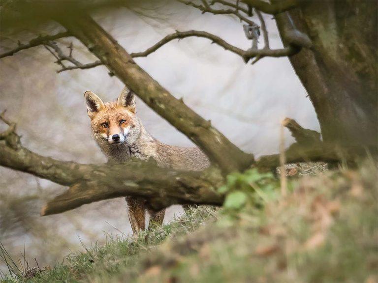 I decided to go and put the trail camera out where there is (still I hope) a badger sett. I know there has been a fox in the area too and it may well be living in an old badger sett; it’s something they are known to do. It was when I was walking quietly toward the sett that I looked ahead and noticed the fox. He/she was staring straight at me and I had about 30 seconds to get a photo before they ran off!