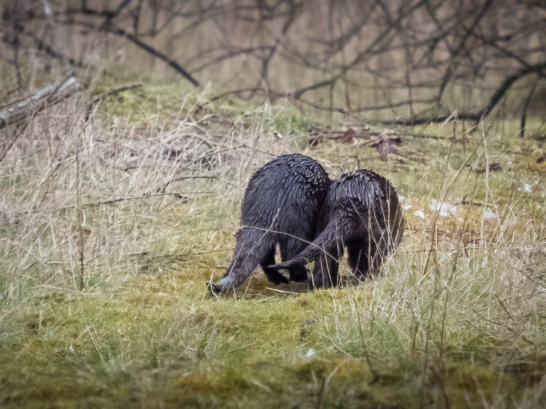 As I started to walk away something caught my eye near the water. Could it be? Really! Yes, it was two otters! I’d never seen them before and even though the experience only lasted a minute or so, before they went into the water, it was still a treat. I hung around a little while in case they surfaced again. One of them did pop its head out the water, but it quickly went back under. I managed to get a couple of photos, more as a record of the sighting than great photos.
